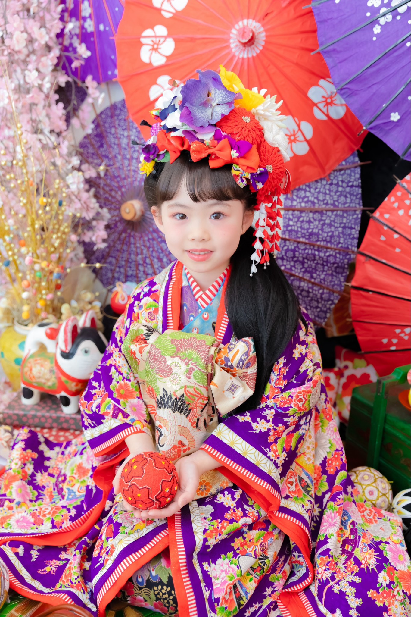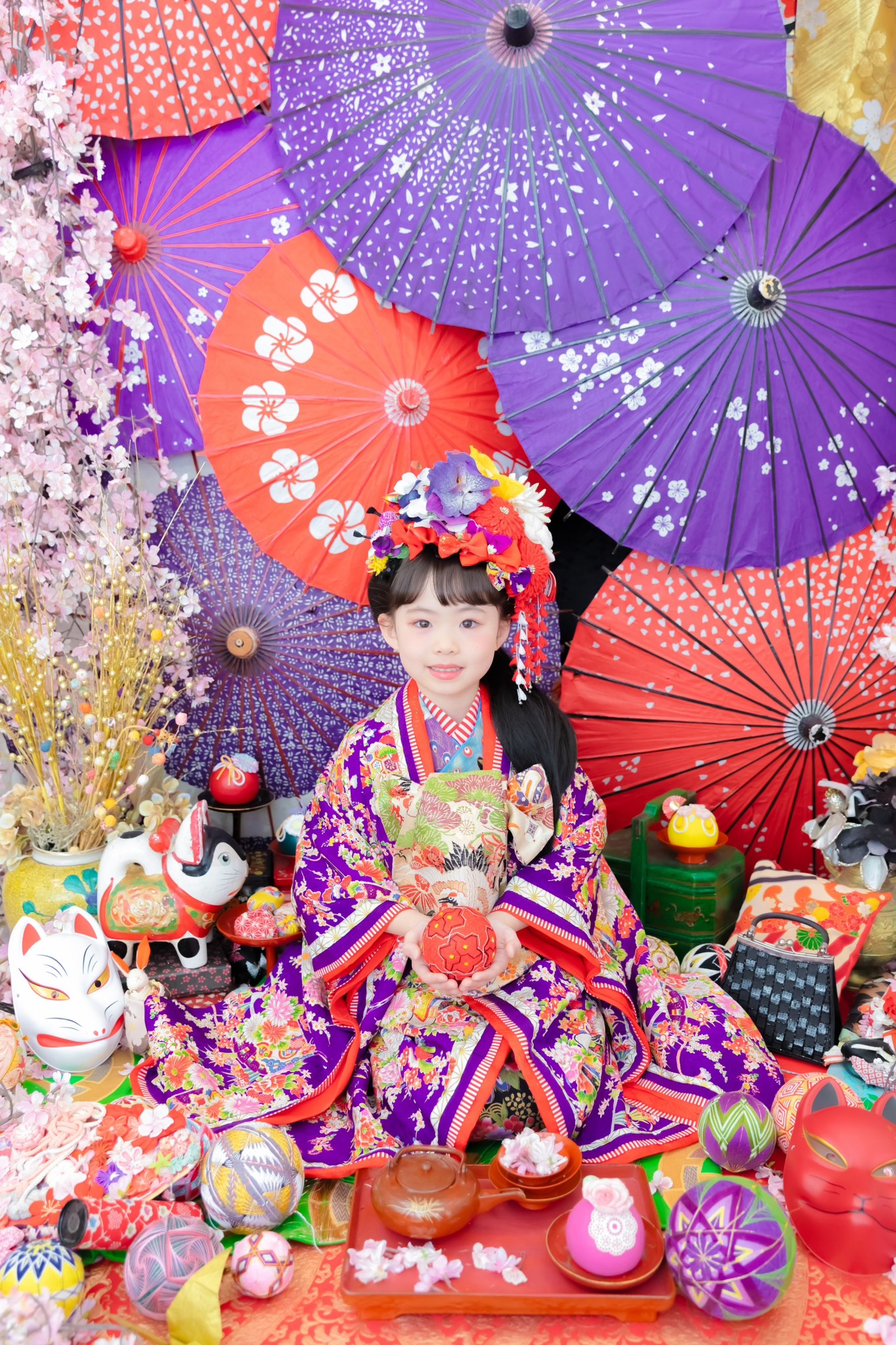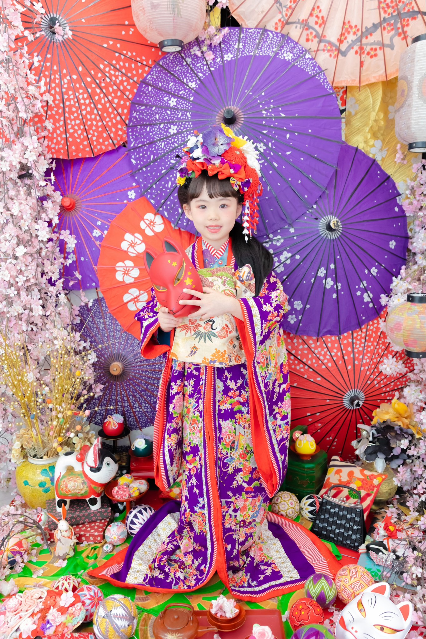 華やかな着物やセットに子どもの表情を引き出すカメラマンさんにと大満足のスタジオでした♪