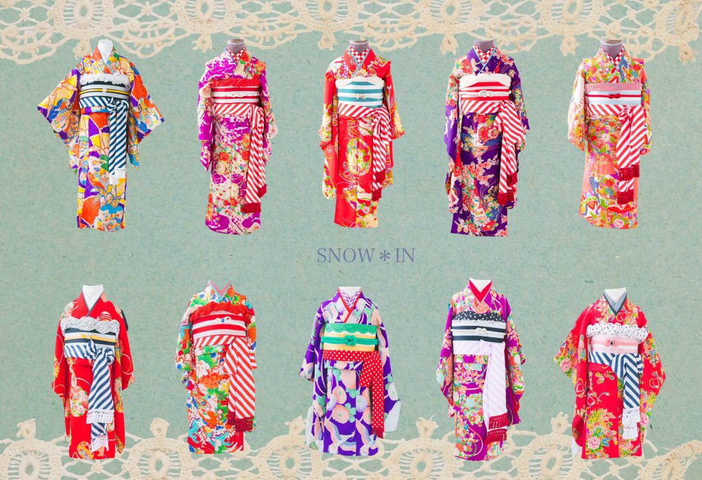 期間中、七五三前撮りご利用のお客様限定特典!キモノガールのオリジナル衣装「姫羽織」はアンティーク着物から作られた、着物の上に羽織るだけでお姫様になれる特別な衣装💕 これが着られるのはスノーインだけ!
