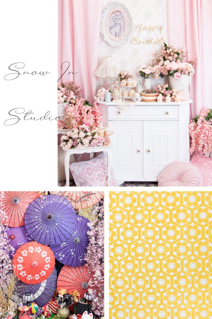 ナチュラル・アンティーク・ポップ・和風・爽やかなグリーン・シンプルモダンなど、6つの異なるセットから選べる背景でこだわりの撮影が叶います